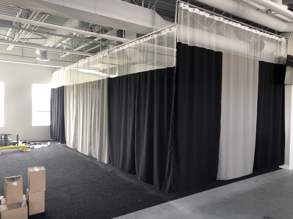 Cubicle tracks & curtains. Mesh top is often required for fire supression within each cubicle